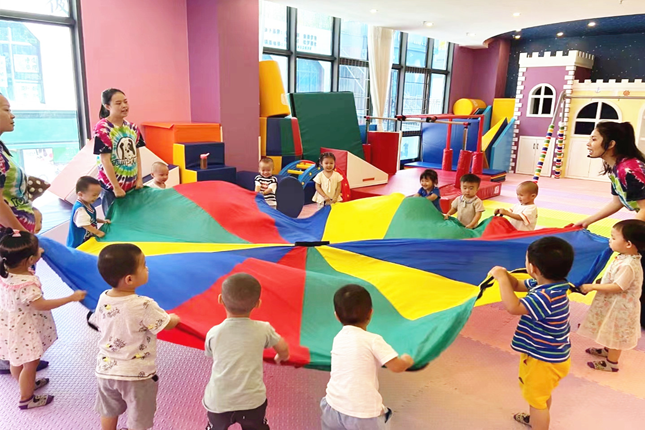 我們的中心由美國著名設計師精心設計,卡通式、情景化環境,可以在為不同月齡的寶寶帶來刺激的體驗的同時保證他們的安全。豐富多彩的軟包設計,使教具更加舒適和容易清潔。不論是只會爬的嬰兒、蹣跚學步的幼兒,還是學齡前兒童都可以在此玩耍。